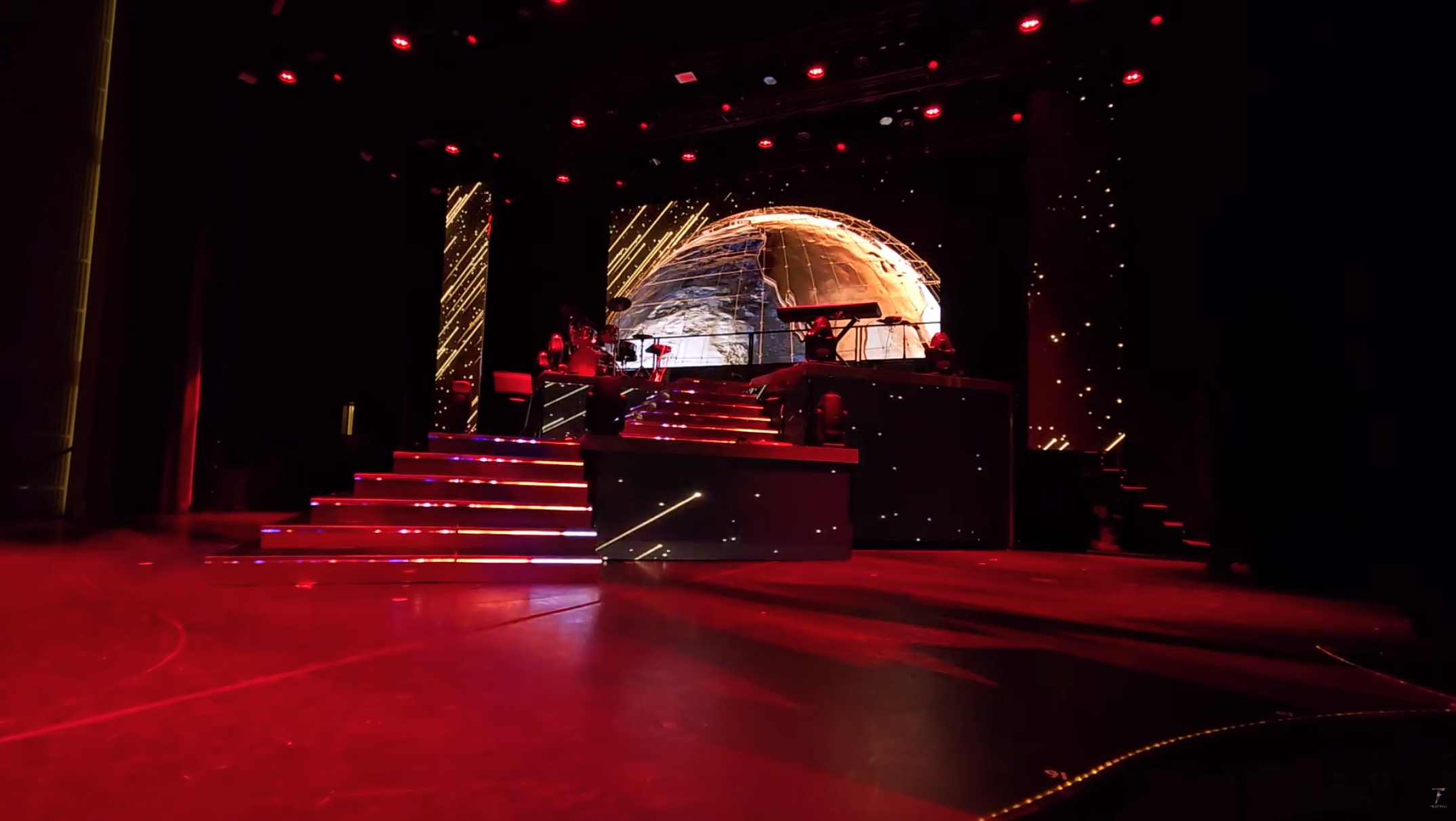 Lightweight LED panels and smart video strips were selected to adhere to both the ship’s rigging constraints and for ease of set piece repositioning. The set was completely fabricated, built, and tested in our Las Vegas shop over the course of several weeks. The integration team alongside ship contractors installed and seamlessly integrated the LED screens into the main stage set piece and side banners during a port of call, ensuring precise alignment for maximum visual impact. A new turnkey media server was deployed for a comprehensive management solution, providing timecoded show control and video signal distribution.